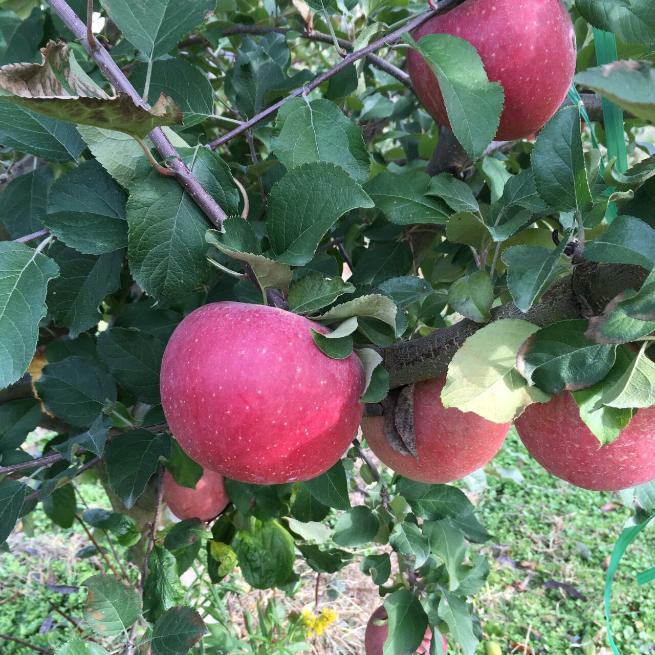 葉とらずりんごは、見た目は葉陰があり赤みがまだらですが、甘さはピカイチ。